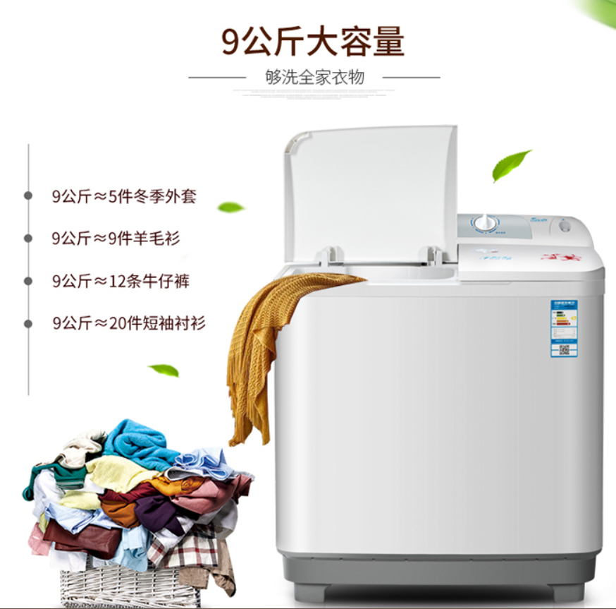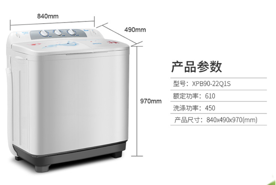 商品名称:美菱(MELING) 9公斤大容量双桶洗衣机 省水省电 下排水 小型白色家用 XPB90-22Q1S