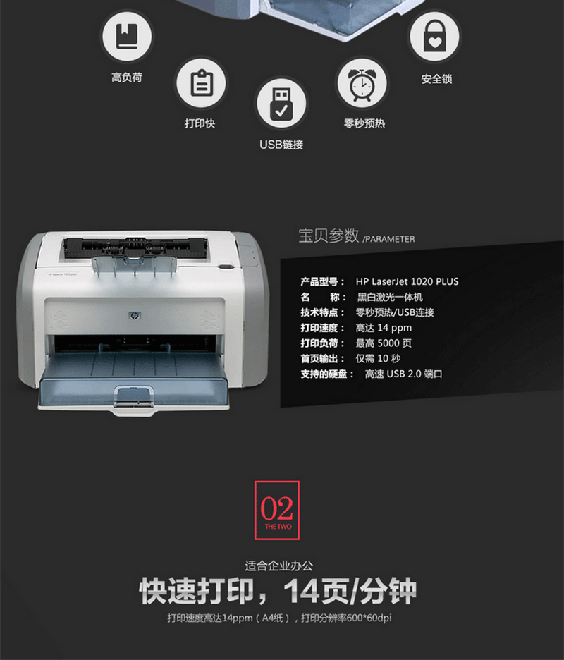 商品名称:惠普(HP)LaserJet 1020 Plus 黑白激光打印机