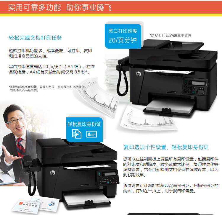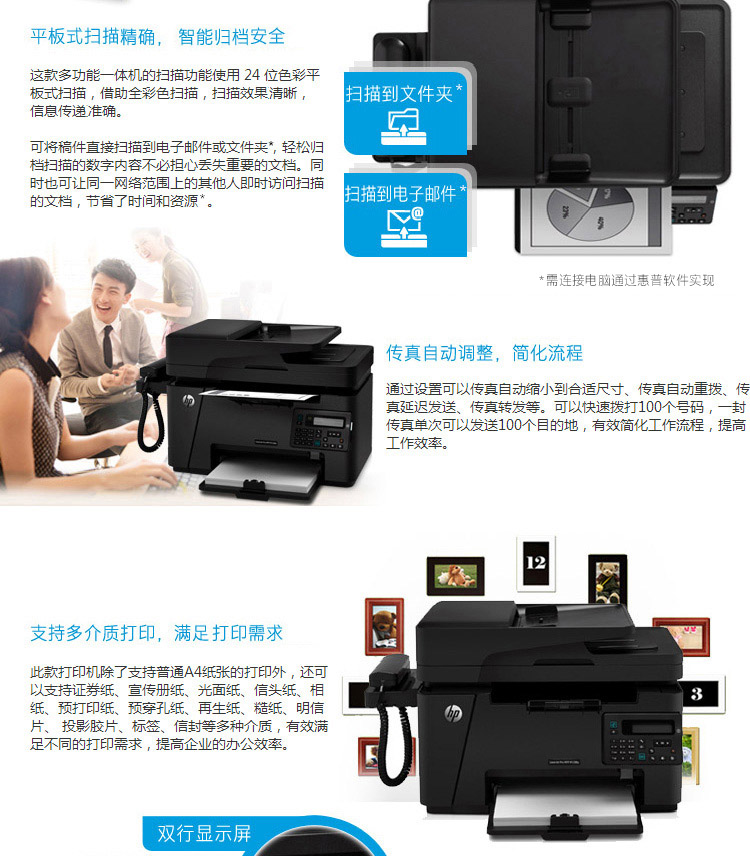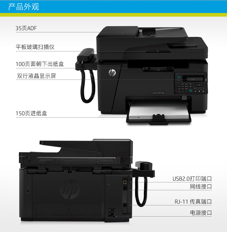 商品名称:惠普(HP)M128fp黑白激光一体机 打印复印扫描传真 电话手柄