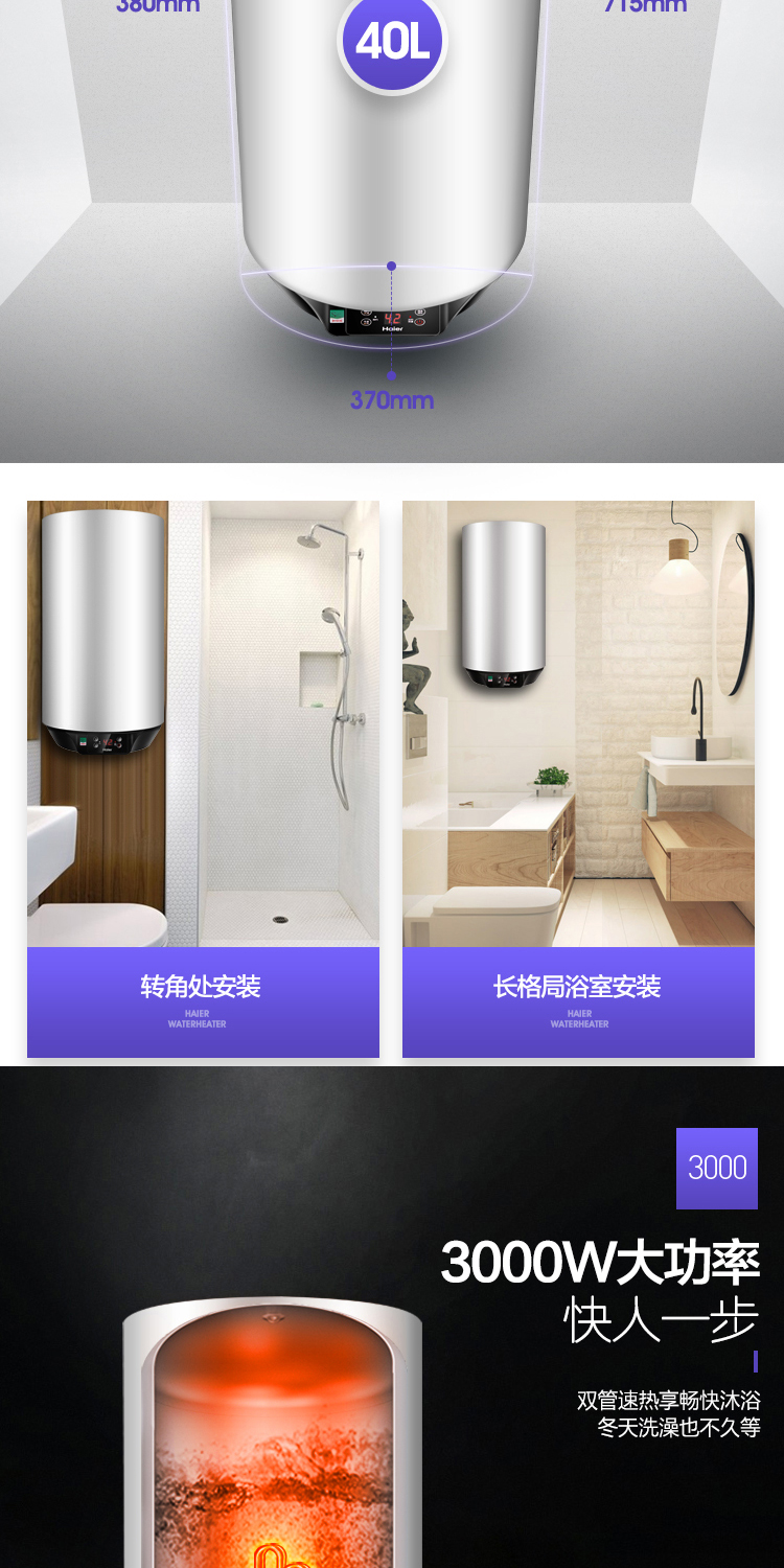 商品名称:海尔(Haier) 热水器40/50/60L U1(E) 竖立式 储水式 速热电热水器 ES60V-U1(E)/60L