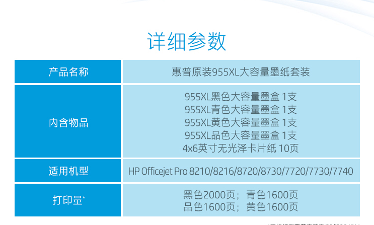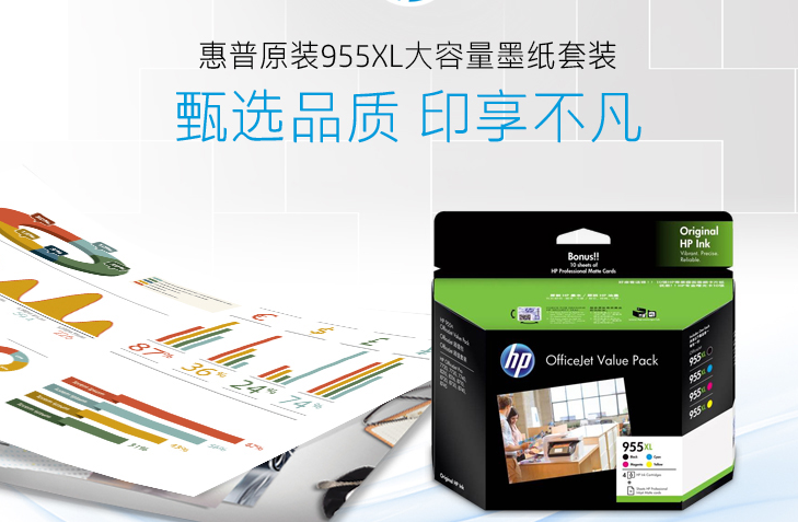 商品名称:惠普 HP 2PD46A 原装955XL 大容量墨纸套装(适用8210 8710 8720 7720 7740)