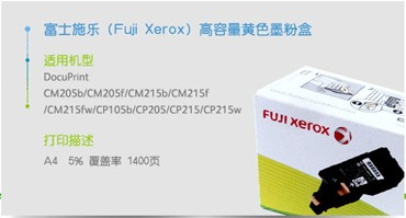 商品名称:富士施乐(Fuji Xerox)原装CP105b/205b/CM215fw施乐碳粉墨盒墨粉盒、墨盒 CT201598黄色高容