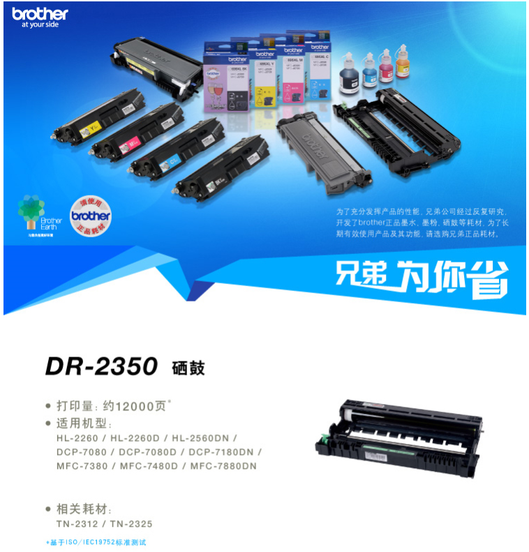 兄弟(brother)DR-2350黑色硒鼓 (适用HL-2560DN/2260D/2260 DCP-7180DN/7080D/7080 MFC-7880DN/7480D/738)