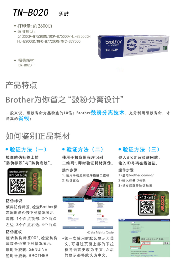 商品名称:兄弟(brother) TN-B020粉盒 打印量2600页7530 7500 2050 2000D7720 7700D