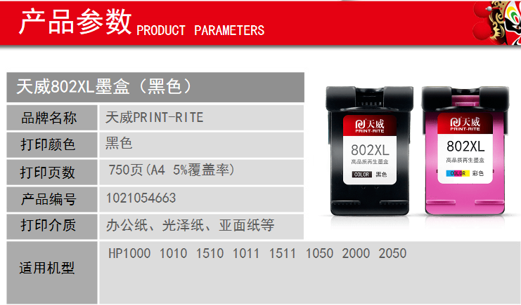 天威 hp802墨盒 高清 黑色大容量 适用惠普 HP1050 2050 1010 1000 2000 1510 1511打印机可加墨