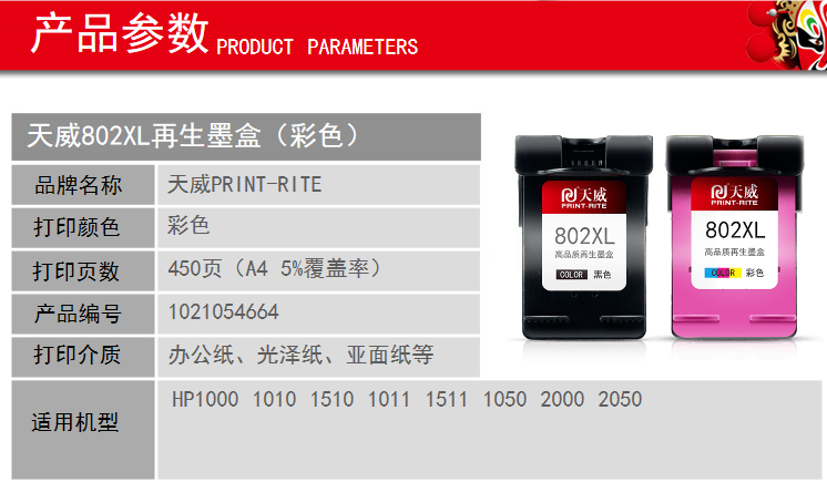 天威 hp802墨盒 高清 彩色大容量 适用惠普hp802 HP1050 1010 1000 1510 1011 2050 1511打印机 可加墨