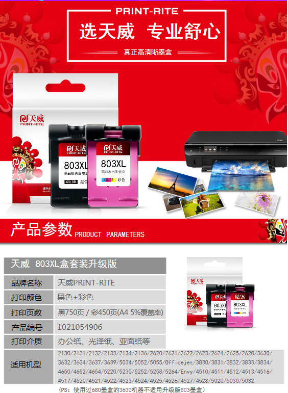 天威 803XL墨盒可加墨 彩色套装 适用2622 2621 2132 1111 1112 2131 2138 5022惠普HP打印机 显墨量升级版