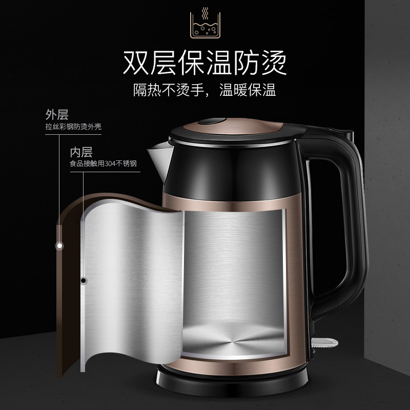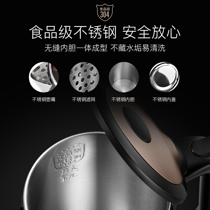 苏泊尔(SUPOR)电水壶热水壶 1.7L全钢无缝双层防烫电热水壶 304不锈钢烧水壶