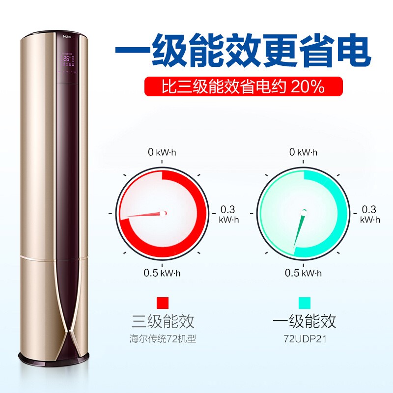 海尔(Haier)3匹变频立式客厅空调柜机 一级能效 自清洁 除PM2.5 智能 静音空调KFR-72LW/07UDP21AU1