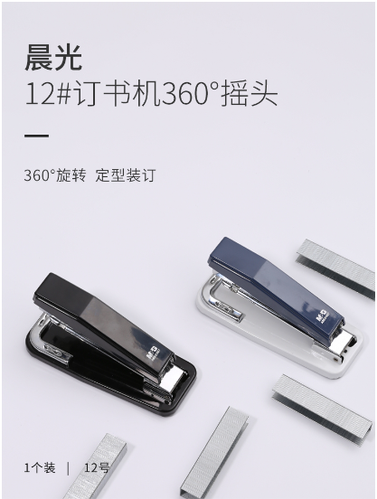 商品名称:晨光(M&G)文具12#360°摇头订书机 高强度金属拉杆订书器 办公用品 单个装颜色随机ABS91627