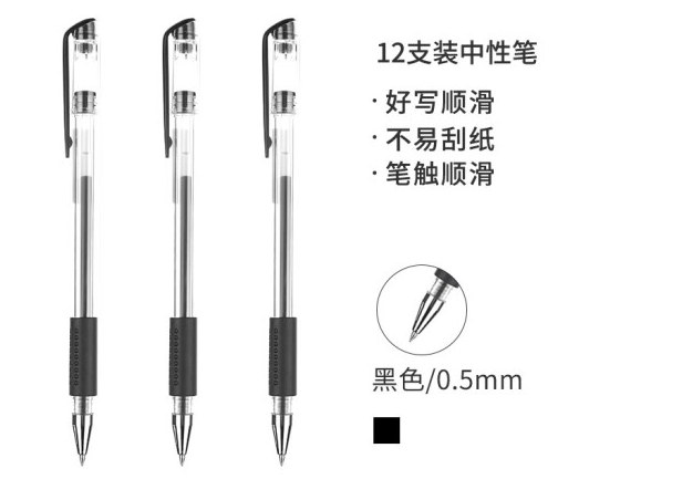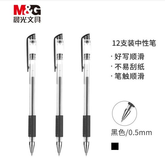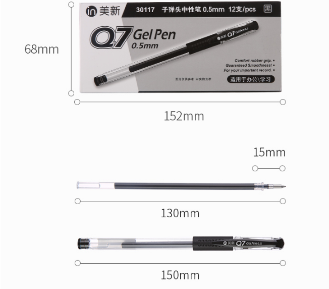 商品名称:晨光(M&G)文具Q7/0.5mm黑色中性笔 美新系列经典拔盖签字笔 子弹头水笔 12支/盒XGP30117