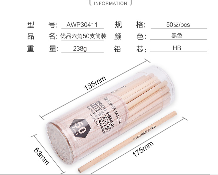 商品名称:晨光(M&G)文具经典HB木杆铅笔 原木学生铅笔 木质铅笔 50支/桶AWP30411