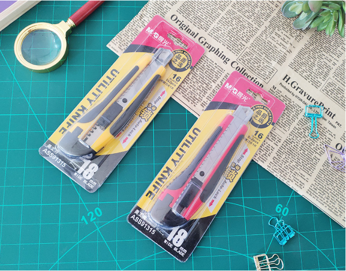 晨光(M&G)文具18mm大号美工刀 裁纸刀自动锁壁纸刀(刀把内含刀片) 单个装颜色随机ASS91315