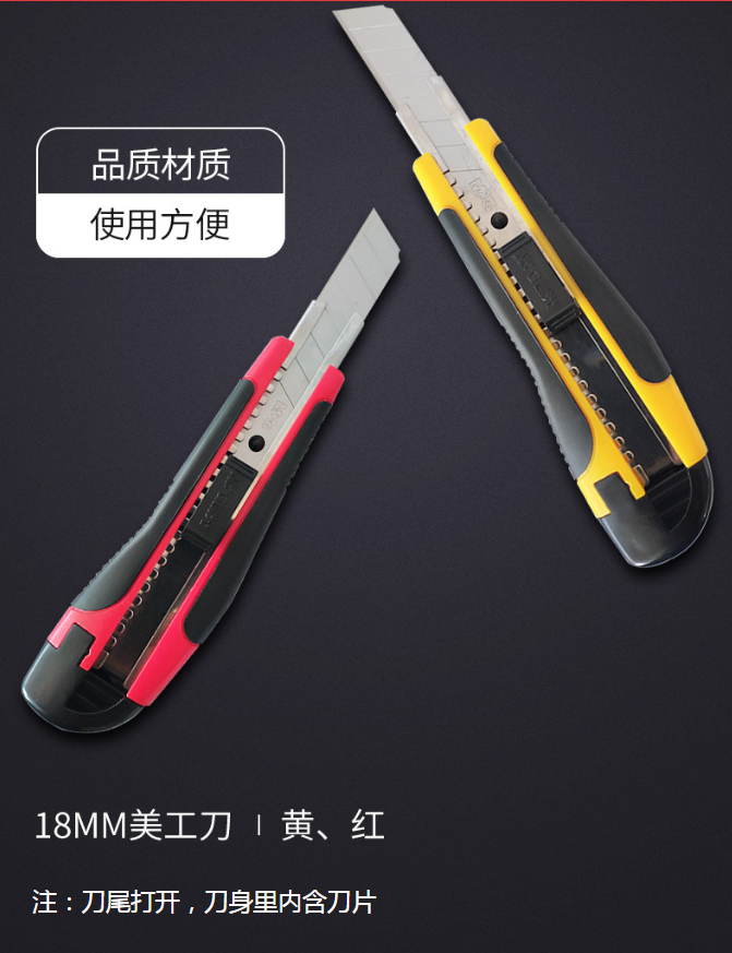 商品名称:晨光(M&G)文具18mm大号美工刀 裁纸刀自动锁壁纸刀(刀把内含刀片) 单个装颜色随机ASS91315