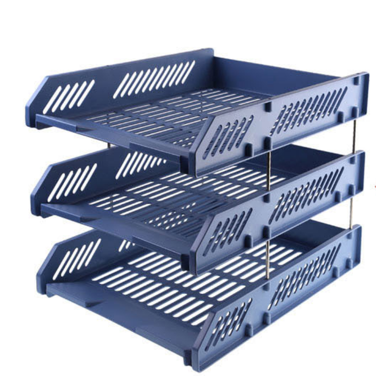 商品名称:晨光(M&G)文具蓝色三层文件框 办公文件架文件座 资料整理收纳文件盘镂空文件栏 单个装ADM94743