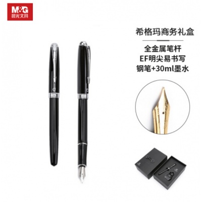 晨光(M&G)文具EF明尖黑色金属钢笔 学生练字墨水笔 希格玛系列男士商务礼品套装(钢笔*1+30ml墨水*1)HAFP0919