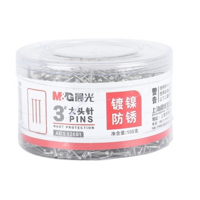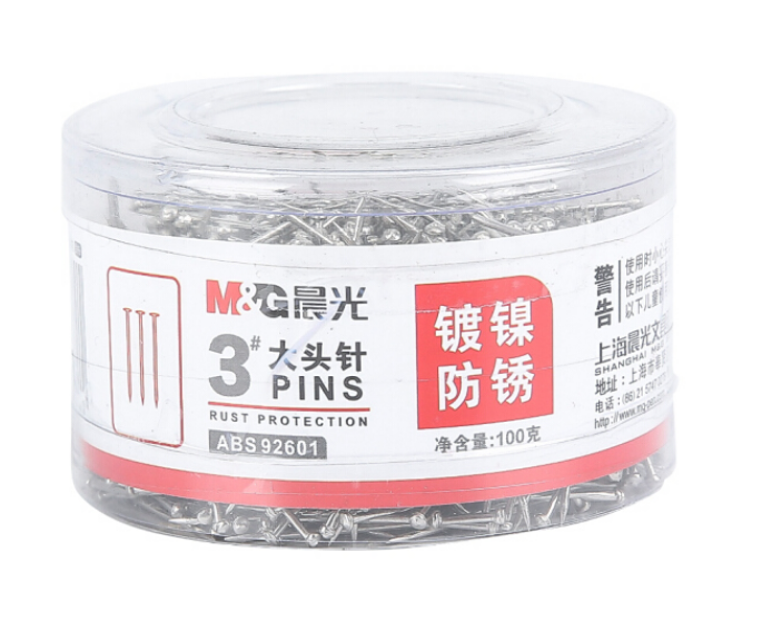 商品名称:晨光(M&G)文具3#大头针 镀镍定位针 办公固定针 100g/筒ABS92601