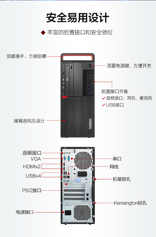 联想ThinkCentreM720t-D234 CPUi5-9500 8GB内存 256G固态硬盘+1TB 硬盘.5液晶显示器