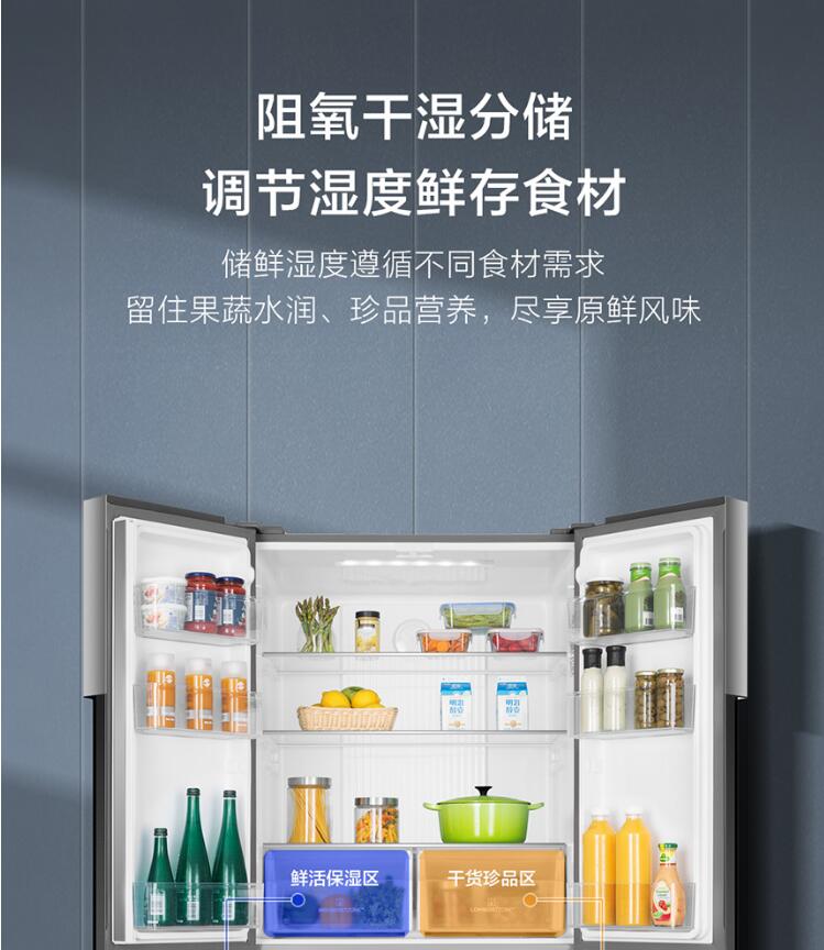 商品名称:海尔(Haier )477升双变频风冷无霜十字门多门纤薄除菌冰箱家用干湿分储厨装一体BCD-477WDPCU1