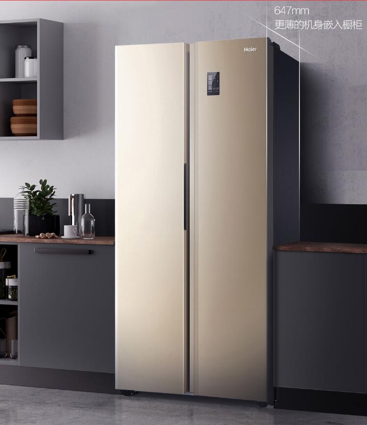 海尔 (Haier )480升风冷无霜变频智能对开门双门冰箱90°悬停门双变频金色BCD-480WBPT