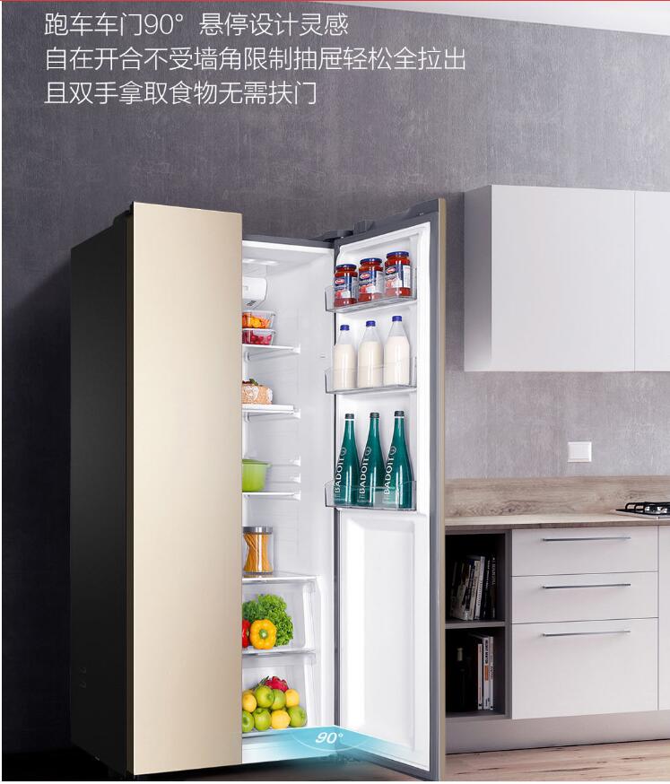 商品名称:海尔 (Haier )480升风冷无霜变频智能对开门双门冰箱90°悬停门双变频金色BCD-480WBPT