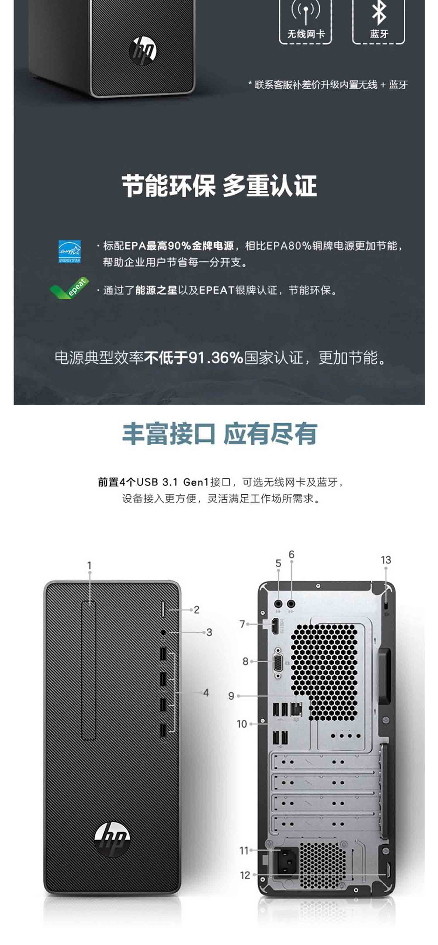 HP 290 G3 SFF /New Core i5-10500/1T 7200RPM SATA+128 GB M.2 2280 PCIe NVMe/4G/有线键鼠/集成显卡 ODD/180W/3-3-3全保/网络同