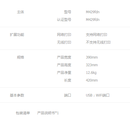 商品名称:惠普(HP)打印机M429fdn a4黑白激光打印机复印扫描一体机