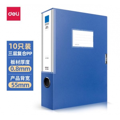 商品名称:得力(deli)10只55mmA4加厚PP粘扣文件盒档案盒资料盒凭证文件收纳盒财会用品27036蓝色