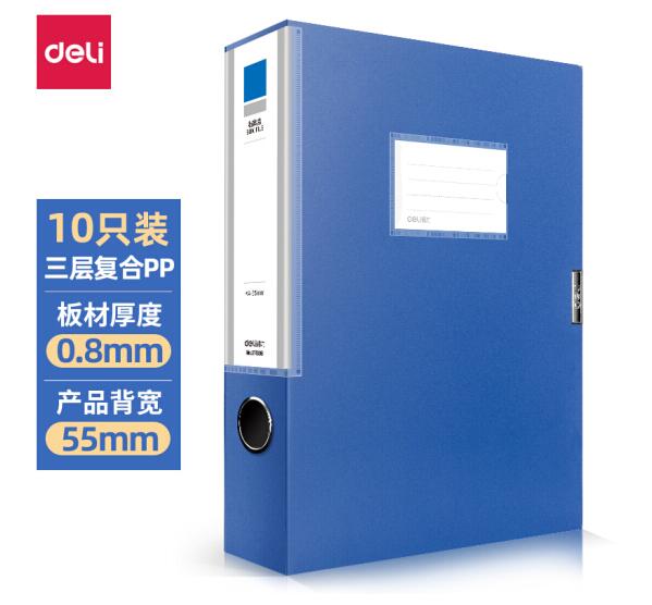 得力(deli)10只55mmA4加厚PP粘扣文件盒档案盒资料盒凭证文件收纳盒财会用品27036蓝色