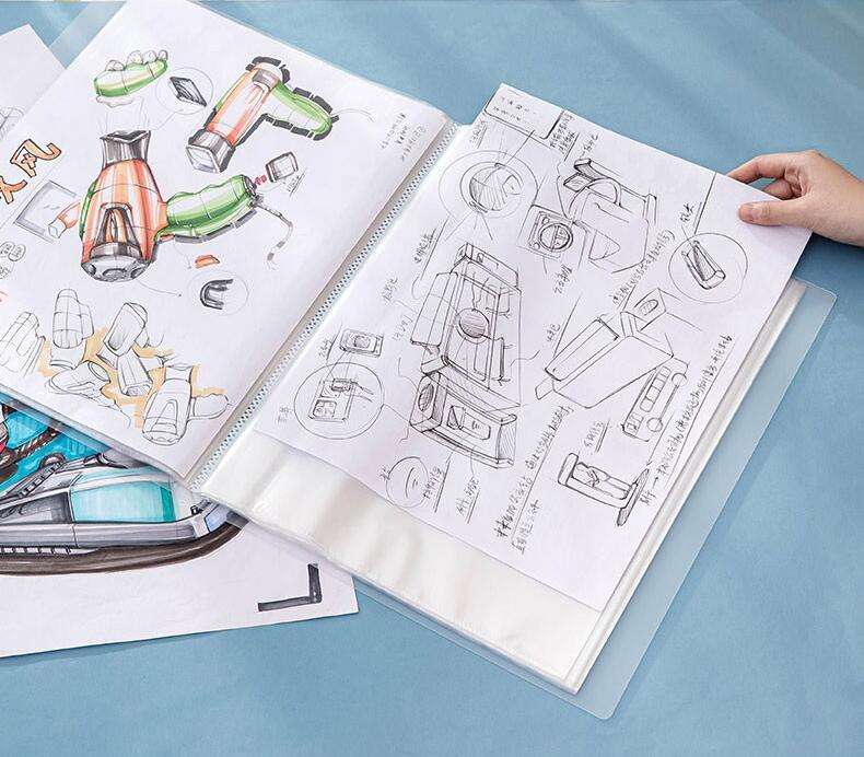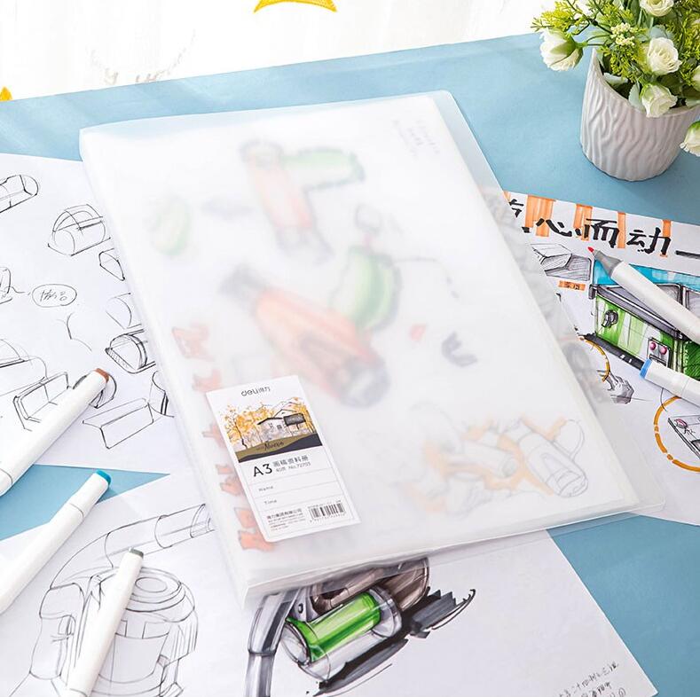 得力画册收纳作品集画稿手提袋8K/4k画册集美术生素描画收藏夹方便便携彩素描临摹画册透明文件带 4K/画稿手提袋72701