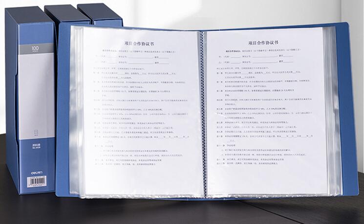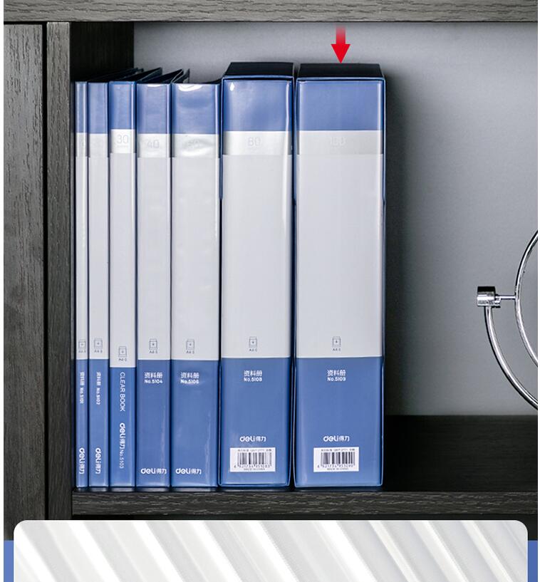 商品名称:得力(deli)A4/100页大容量学生资料册文件活页收纳册 插袋档案文件夹财务发票票证收纳5109
