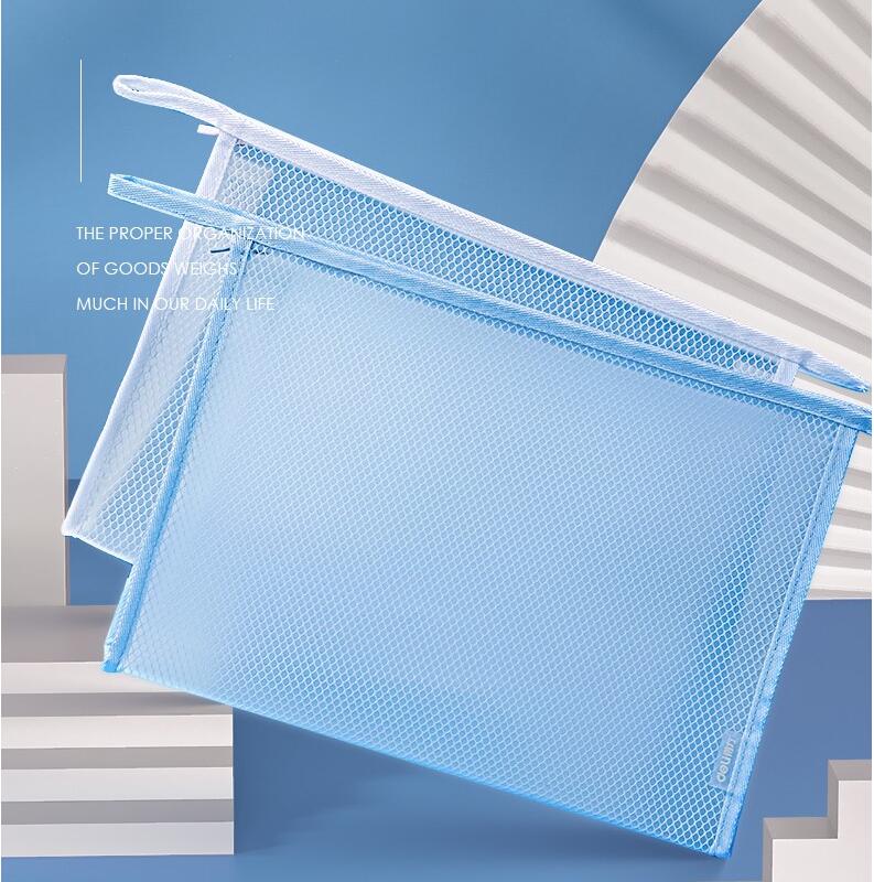 得力加厚EVA透明拉链袋 A4耐用拉边袋文件袋学生资料袋防水办公文件整理收纳袋大容量票据袋档案分类袋 A4蓝色拉链袋 加厚款1个装