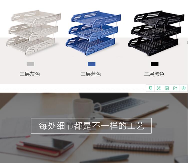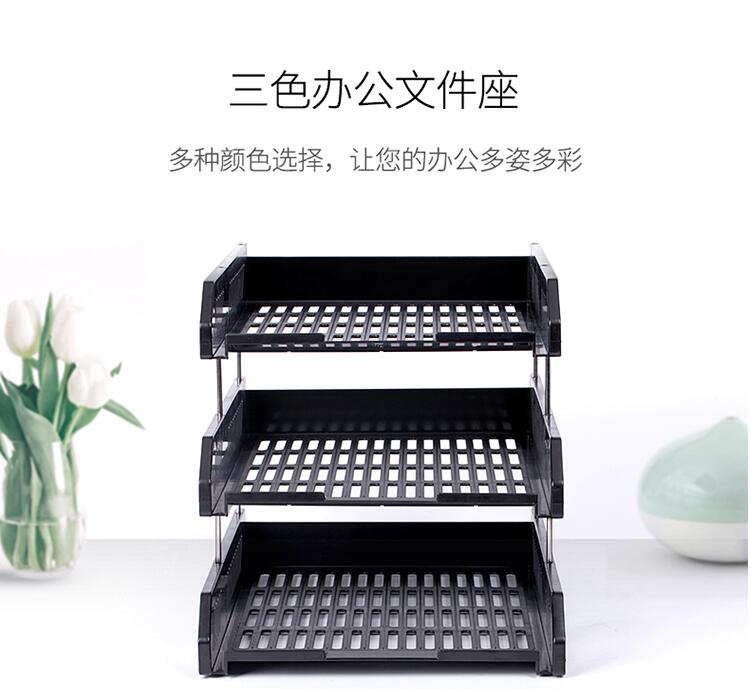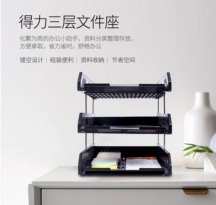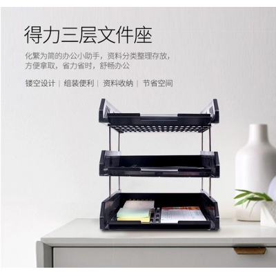 商品名称:得力(deli)三层镂空收纳文件座自由拆卸组装三层文件盘/文件框牢固耐用 桌面文件管理 黑色9209