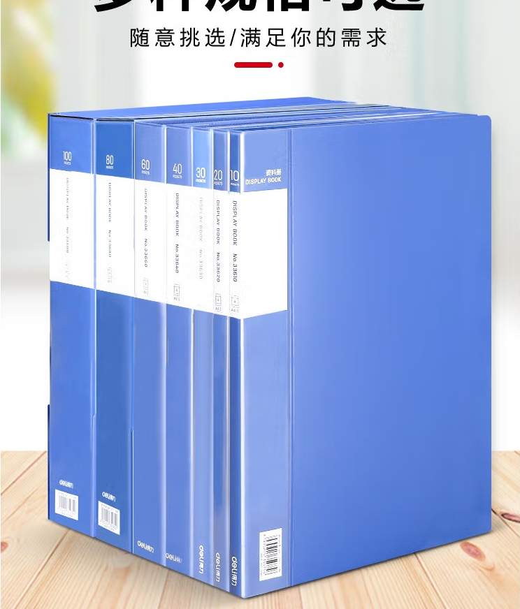 商品名称:得力(deli) 文件册 A4资料册活页文件夹插页袋20/40/80/100页多页多层档案夹办公用品 蓝色60页(3个装)