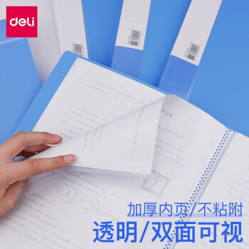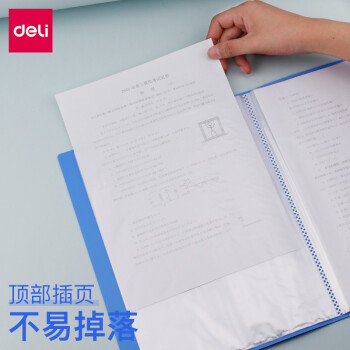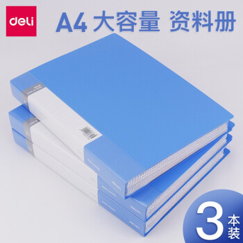 得力(deli) 文件册 A4资料册活页文件夹插页袋20/40/80/100页多页多层档案夹办公用品 蓝色60页(3个装)