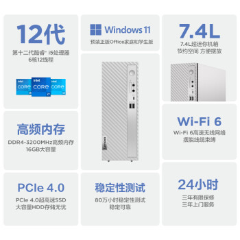 联想(Lenovo)天逸510S英特尔酷睿i5个人商务台式机电脑整机(12代i5-12400 16G 1T+256G SSDwifi win11)23英寸
