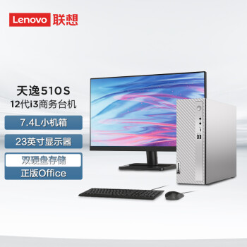 联想(Lenovo)天逸510S个人商务台式机电脑整机(12代i3-12100 8G 1T+256G SSD wifi6 win11)23英寸