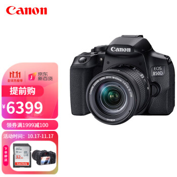 佳能(Canon) EOS 850D 新款单反相机 入门中高端单反相机高清4K摄像 佳能850D+18-55 STM短焦镜头 标准套餐(64G卡+电池+相机包)