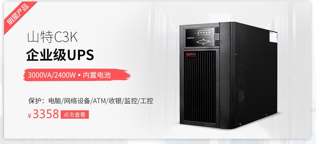 商品名称:山特(SANTAK) 山特C3K ups不间断电源在线式稳压 3000VA/2400W