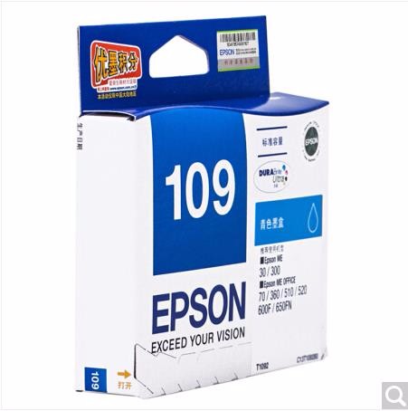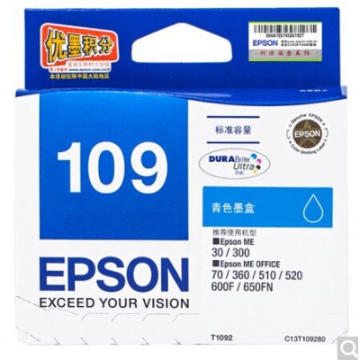 爱普生(Epson)T1092青色墨盒 C13T109280(适用ME30/300/360/510/600F/650FN/700FW)