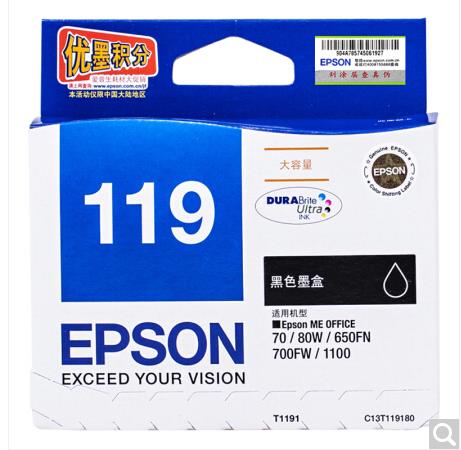 商品名称:爱普生(Epson)T1191 大容量黑色墨盒 C13T119180(适用650FN/70/1100)