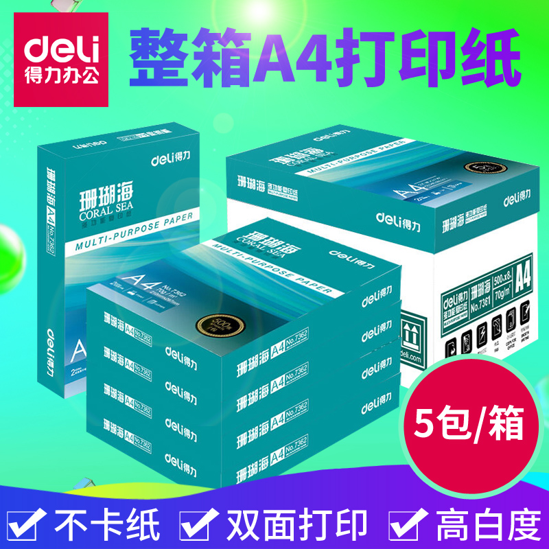 得力(deli) 7361 A4 珊瑚海复印纸 70g 500张/包 5包/箱