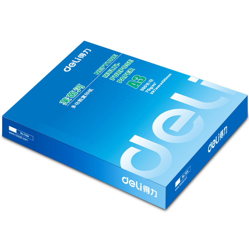 商品名称:得力(deli) 7404 A3 莱茵河复印纸 70g 500张/包 单包装