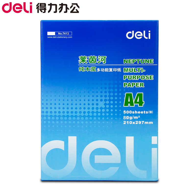 商品名称:得力(deli) 7413 A4 莱茵河复印纸 80g 500张/包 单包装