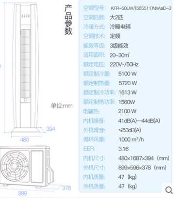 商品名称:Gree/格力 KFR-50LW/(505511)NhAaD-3 大2匹定频冷暖客厅空调立式