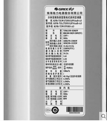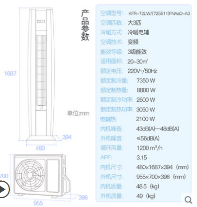 商品名称:Gree/格力 KFR-72LW/(725511)FNAaD-A3三匹变频客厅空调立式柜机
