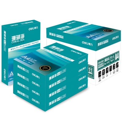 商品名称:得力(deli) 7362 A4 珊瑚海复印纸 70g 500张/包 单包装