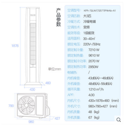 商品名称:Gree/格力 KFR-72LW/(72577)FNhAb-A1一级能效智能变频冷暖空调