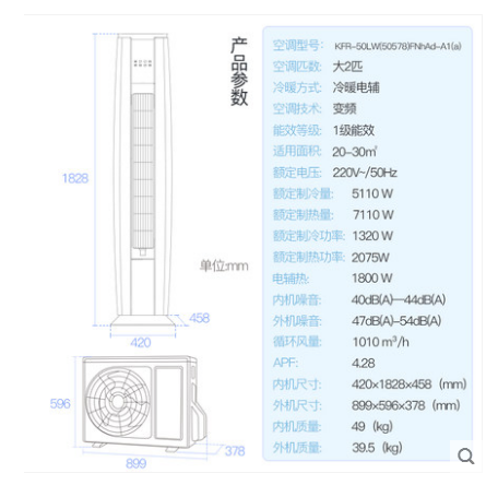 商品名称:Gree/格力 KFR-50LW/(50578)FNhAd-A1(a)大2匹变频冷暖智能空调