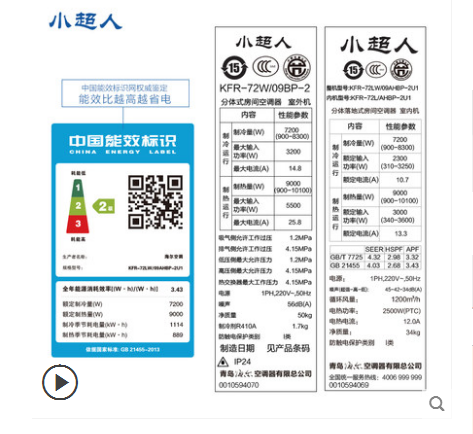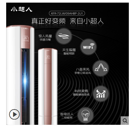 商品名称:海尔出品 小超人 KFR-72LW/09AHBP-2U1 3匹立式圆柱冷暖空调柜机